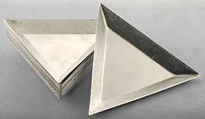 Triangular shape 3" trays are ideal for organizing and counting small parts, stones, and findings.