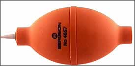 This Bergeon blower is perhaps the most popular dust blower in the world. With PVC nozzle. Inlet valve at the bottom of the bulb (to prevent air from entering by way of the nozzle). Length 130 mm, Ø 58 mm.